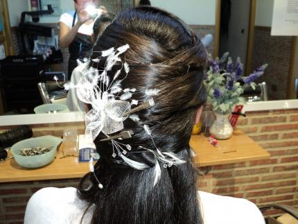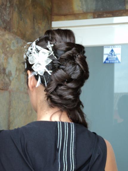 La primera foto es para que os hagais una idea, y encima la novia queria que fuera un trabajo discreto y que no abultara mucho.Ni las horquillas querian quedarse sujetas.
