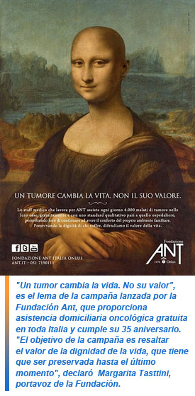 La campaña muestra a la célebre Gioconda de Leonardo Da Vinci tal y como es reconocida en todo el mundo pero sin cabello, una de las consecuencias más patentes provocadas por el cáncer.
