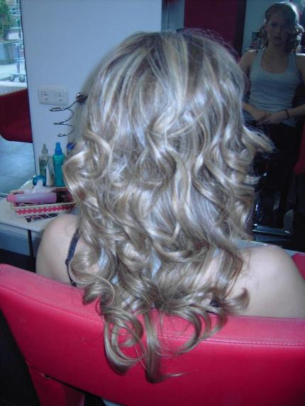 Le han quedado muy bien las mechas ¿cómo se las hiciste, con gorro?, qué marca de decoloración usaste y la oxigenada de cuántos volúmenes se la pusiste?, haber si explicas un poco más que me gusta; el peinado está bien pero para mi gusto me gustaría más con la raya recta al lado; y el maquillaje está muy bien, yo no soy esteticista pero veo que le favorece mucho a la chica, aparte de que ya se vé que es muy guapa de por sí.