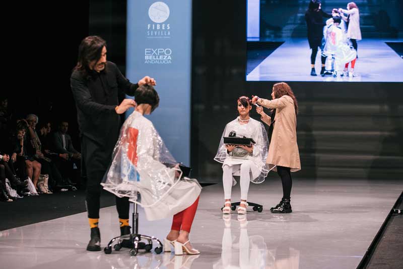 Urbiola Formación riza el rizo y pone al público en pie en las gradas de la pasarela de Fibes Sevilla, en la II edición de Upp the Show, un global de estrellas al servicio de la teoría, la técnica y el saber hacer en la peluquería