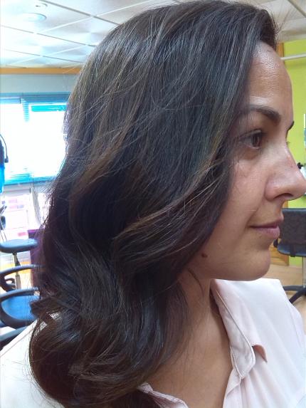 cabello muy muy rizado...lo alisé y realice rizos con el cono para conseguir onda muy suave.....