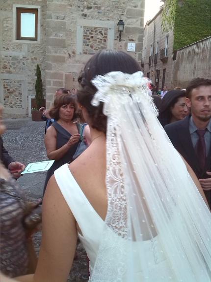 Y después llega el momento celebración, donde generalmente se quitan la mantilla, y siempre está la amiga, madre, suegra o la de pronovias que quita la mantilla sin cuidado y desluce aún más lo que yo he hecho.