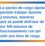 Con un diseño ergonómico y ligero, la Vario ofrece una gran comodidad en todo tipo de trabajos, a lo que se añade su gran autonomía de 100 minutos gracias a su batería de litio, sin necesidad de lidiar con cables. Su opción de carga rápida permite trabajar durante 2 minutos, mientras que se puede disfrutar de los 100 minutos de funcionamiento con tan sólo una hora de carga. Esto supone el doble de tiempo de funcionamiento para poder realizar varios cortes con una sola carga.