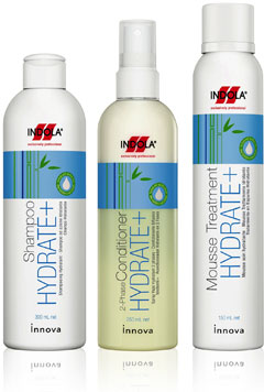 La línea de Hydrate+ está formada por un champú, un acondicionador en dos fases y un nuevo tratamiento en espuma, el primero de su clase en toda la gama Indola Innova.