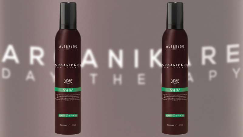 Arganikare Beautifyng Collection - Miracle Beautifying Collection de Alter Ego Italy presenta Whipped Cream, mousse crema acondicionadora, mantiene el equilibrio hídrico preservando la integridad del color cosmético. Aporta extraordinaria suavidad y docilidad al peine sin apelmazar.