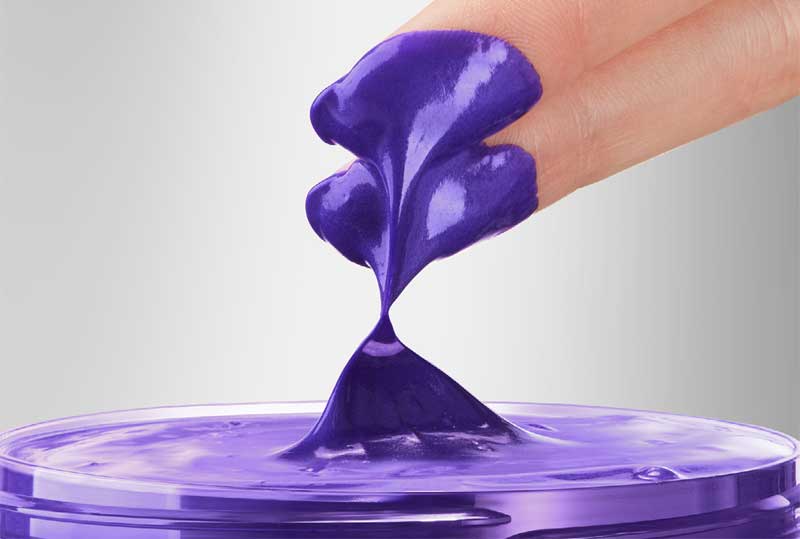 Es un gel cremoso de un violeta intenso enriquecido con pigmento frío japonés y peonía blanca de japón