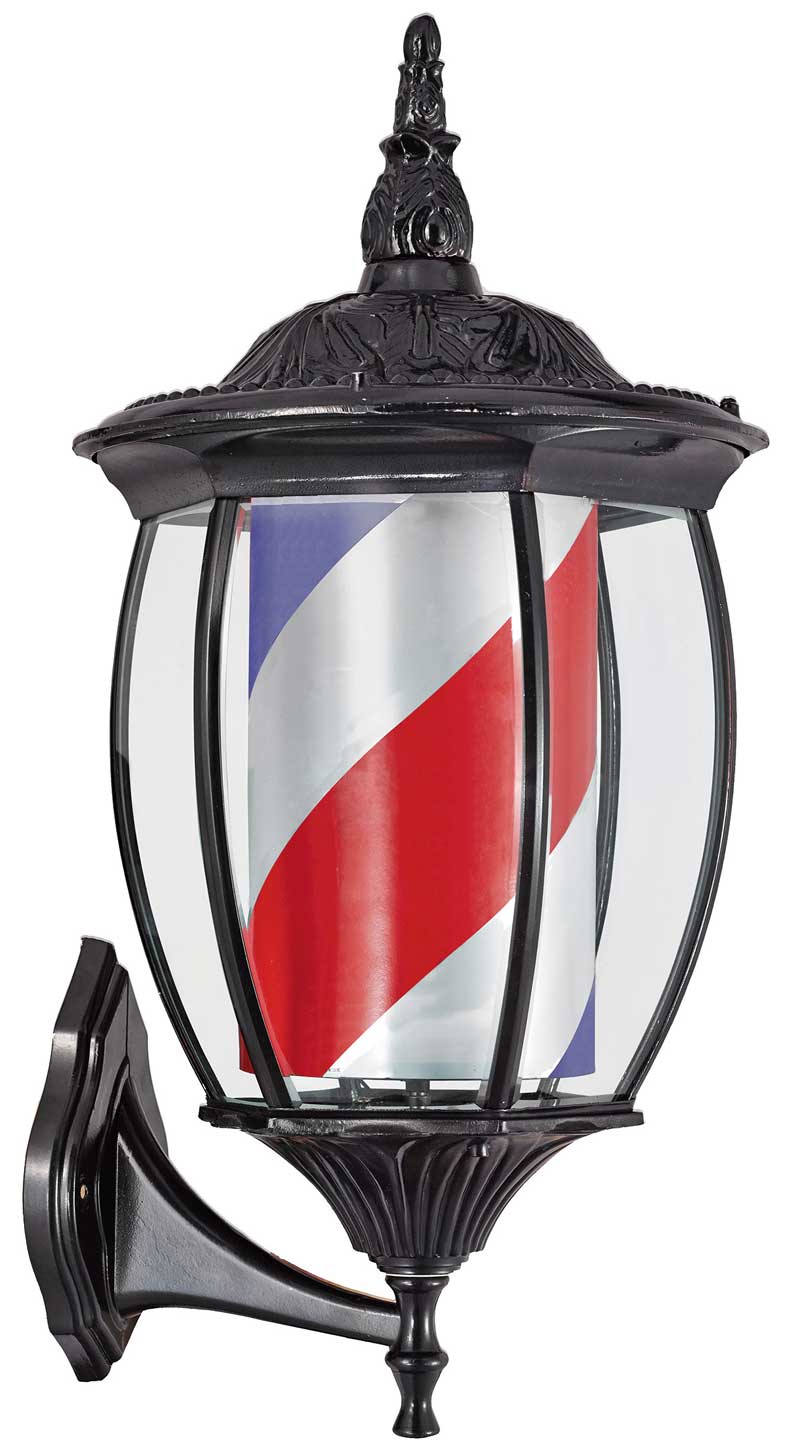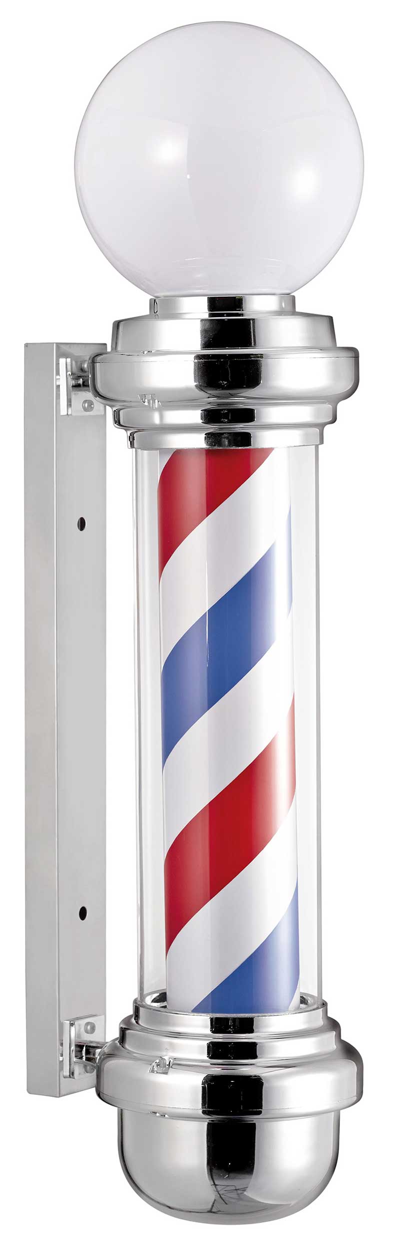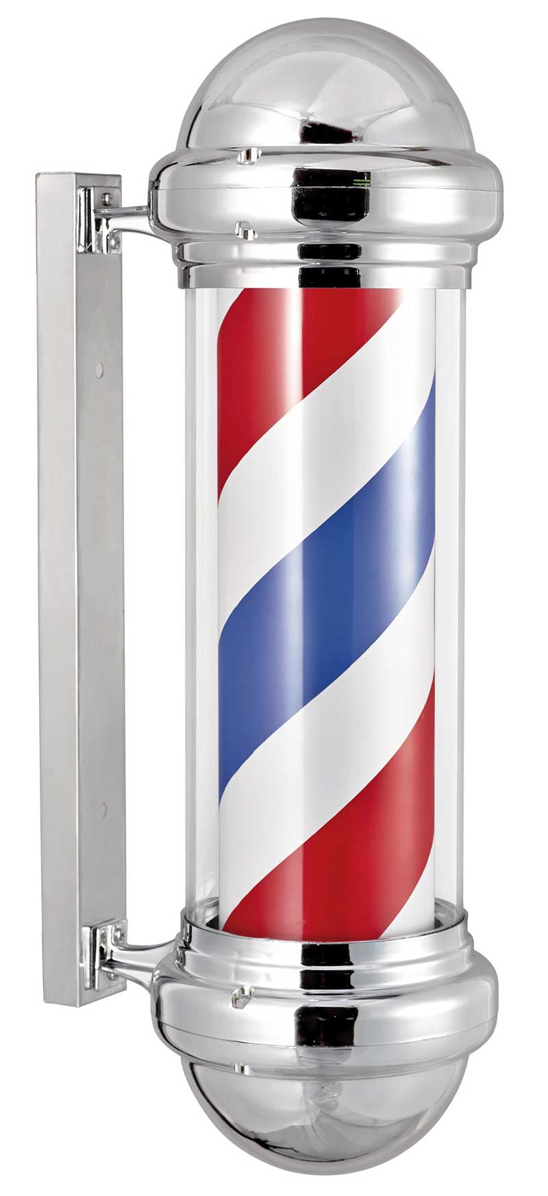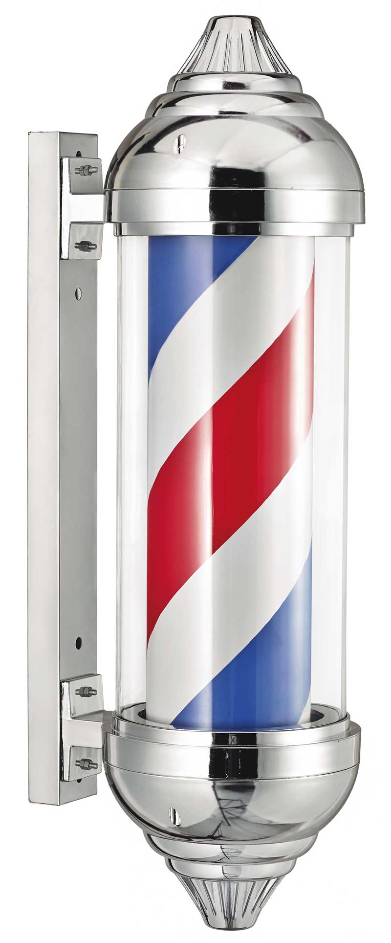 Perfect Beauty Men, de Perfect Beauty, presenta cuatro modelos nuevos de postes de barbero, con soporte para fijar a la pared. Postes provistos de luz y eje interior que hacen girar la combinación de rayas rojas, blancas y azules.